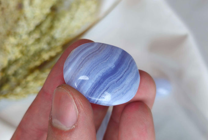 Blue lace agate is an exquisite gem and a blue variety of chalcedony, with connection to the quartz family. Agates are formed in layers with different inclusions in the crystal lattice which cause the different colored layers. Associated with the throat chakra, it enhances communication, clarity, and trust. Make this beautiful peace part of your daily use as it's ideal for manifestation, meditation, and relaxation. One of the rarer finds in the mineral world, this captivating stone originates from Africa and has been spotted in Eastern Europe. Elevate your collection with this remarkable blue lace agate palmstones, offering both aesthetic appeal and spiritual benefits.