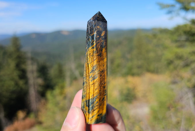 Tigers Eye, a captivating mineral part of the quartz family and a pseudomorph. This exquisite crystal is known for its ability to activate the root, sacral, and solar plexus chakras, promoting a sense of strength, balance, and creativity. Tigers Eye is also believed to offer protection, balance polarities, and bring luck and good fortune to the owner. Each unique piece showcases the mesmerizing golden and brown banding patterns that Tigers Eye is famous for, making it a beautiful addition to any crystal collection. Whether you're looking for a crystal to enhance your personal energy or to simply admire its natural beauty, Tigers Eye is a must-have for any crystal enthusiast.